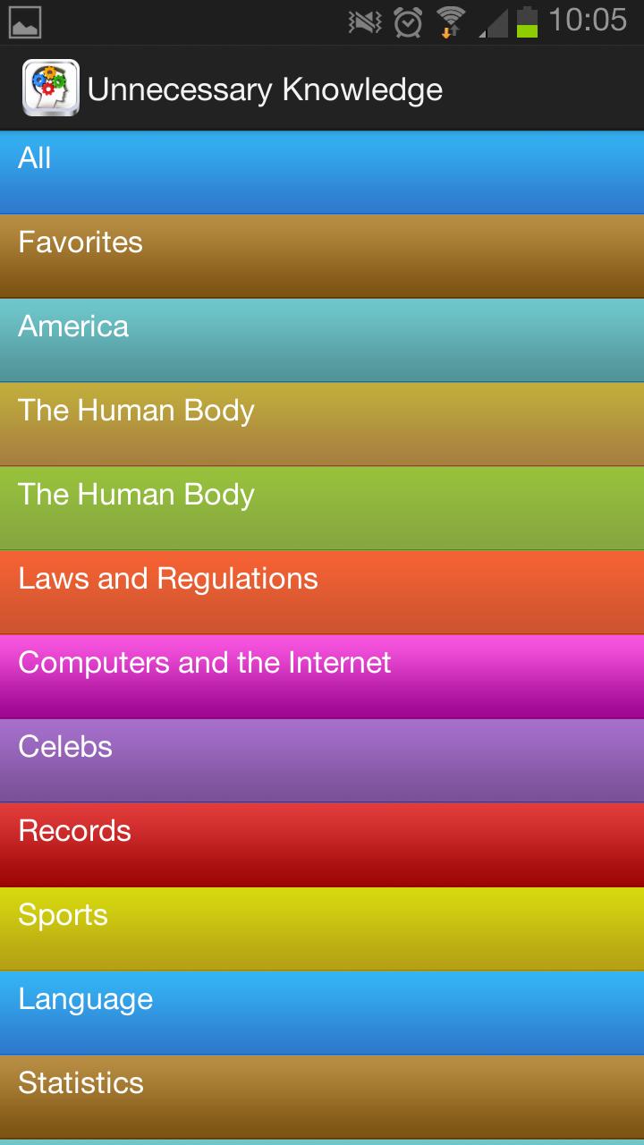 We have collected around 2100 useless facts from all over the world and put them into an App.