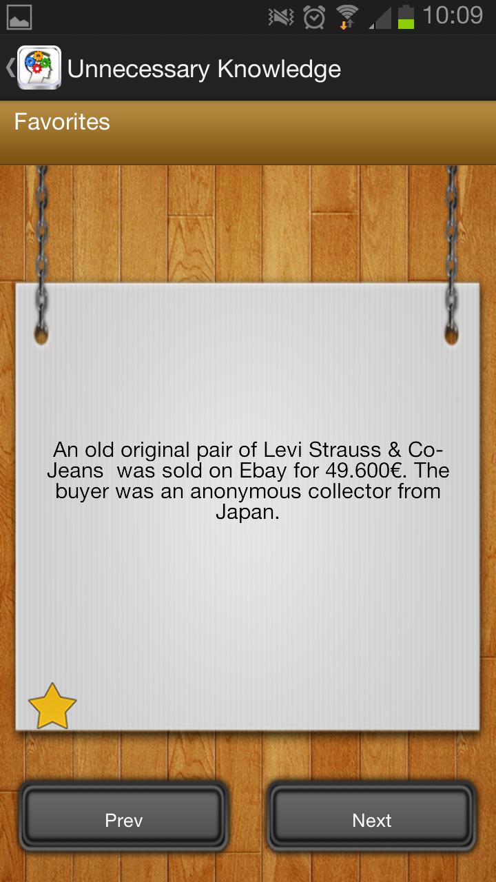 You can save your favourite facts too. They’ll be listed in extra category “Favourites.”