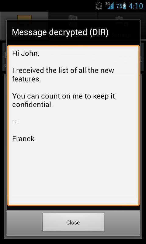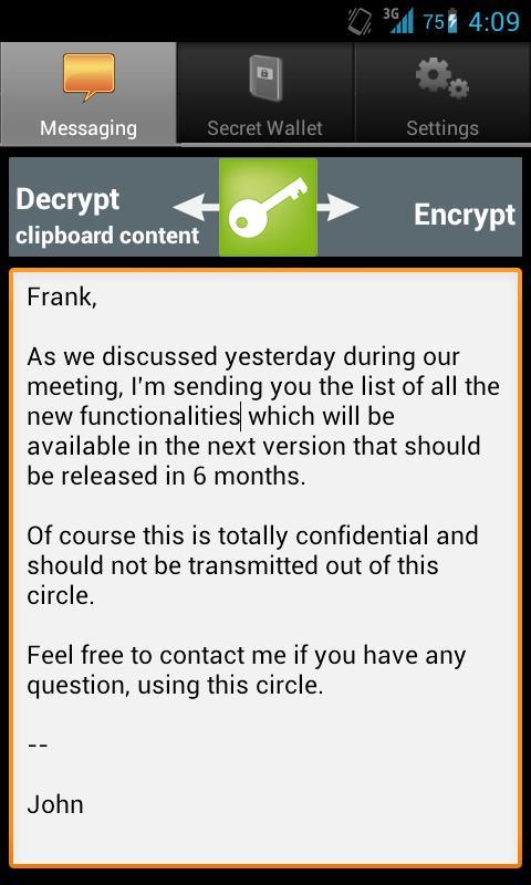 Send encrypted e-mails and SMS using a shared password with the message recipient.