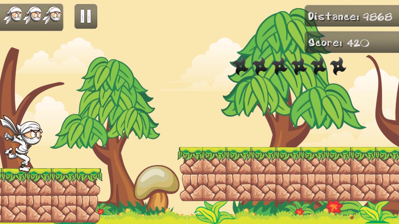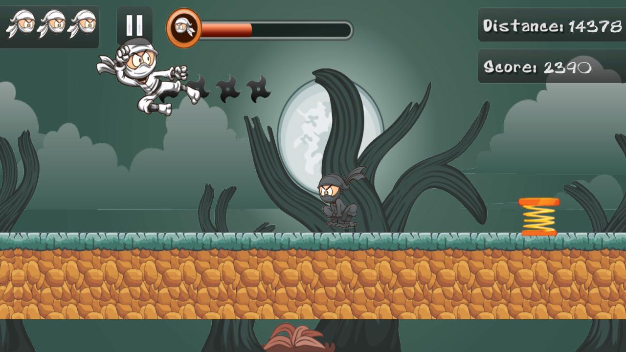 Help the White Ninja to survive trough all levels with different environment and difficulty.
