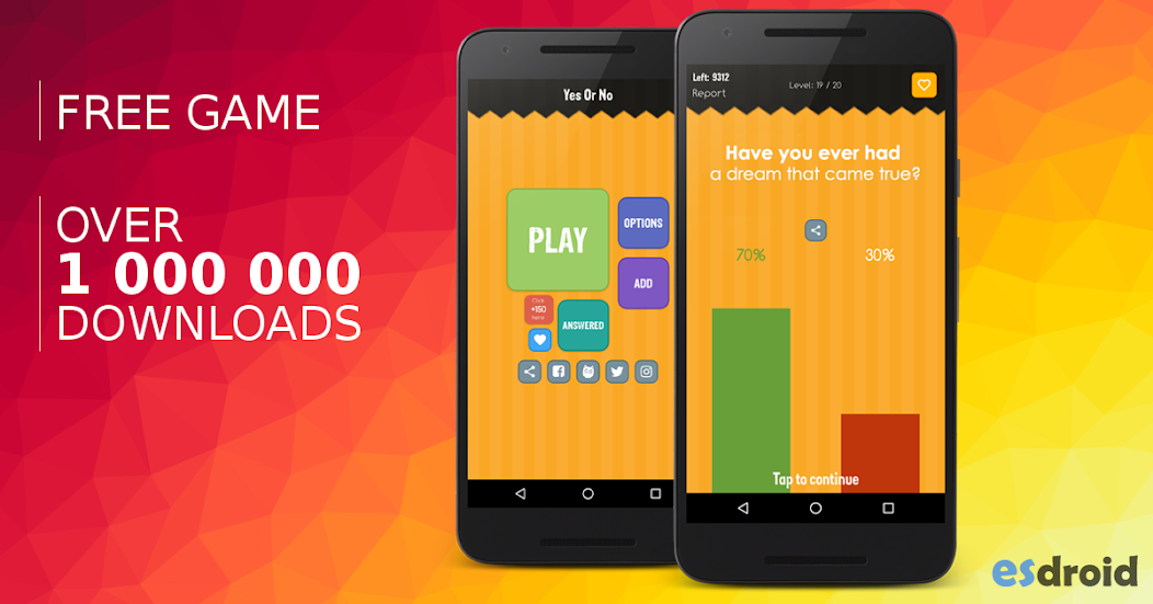 Yes Or No is a funny game and addicting game that gives awesome, unusual way to spend your free time (or when bored) and also to laugh or learn something curious! It's a simple Yes Or No game, where you answer questions by clicking Yes Or No button. Fun games (and funny games as well) like Yes Or No are really rare. Install and check it out! You don't lose anything - game is absolutely free :)