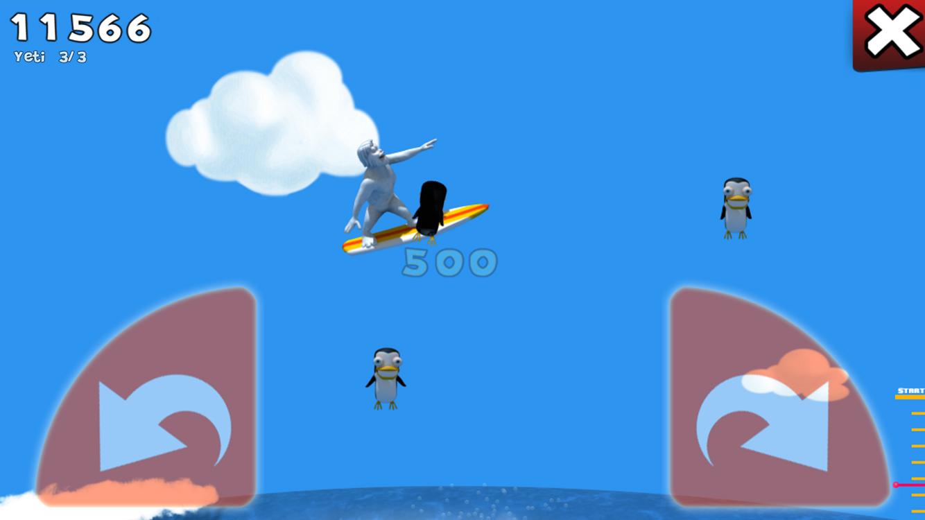 Hit pengus in-air to get score points. Try to get more than one per jump. This will multiply the value.