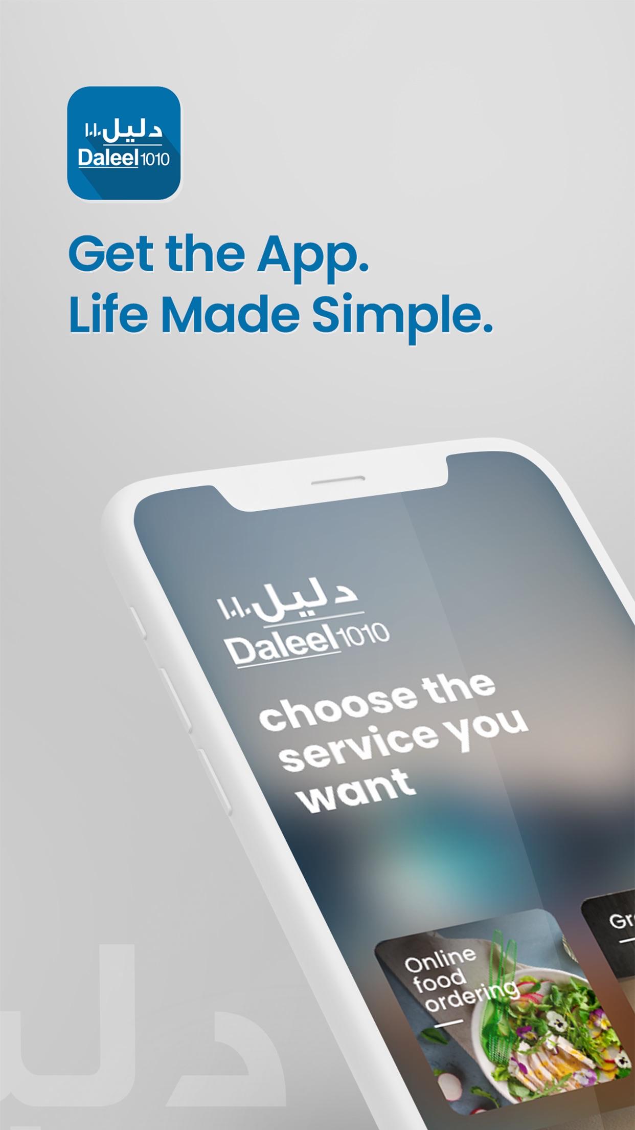 Daleel 1010是一个为每个人提供交付的名称。这是一个用户友好的应用程序,旨在使生活变得轻松,并提供简单的搜索和选择食品,杂货,鲜花和巧克力,预订家庭服务或查找业务信息的选择。