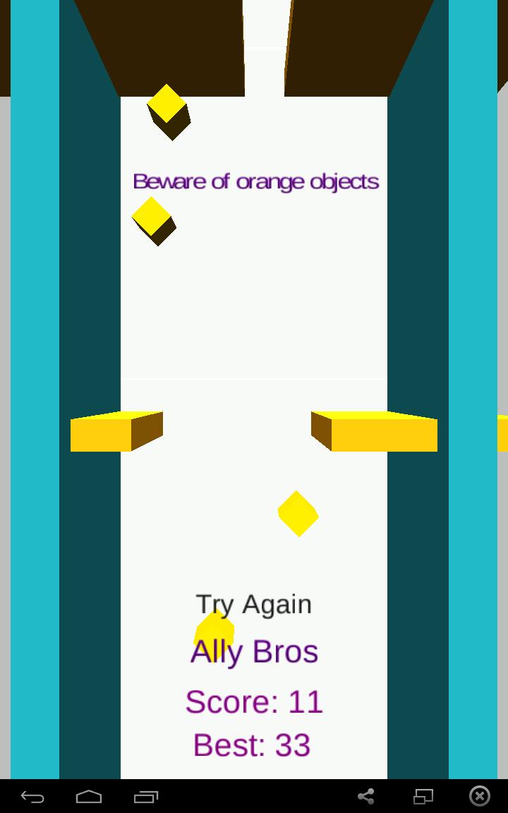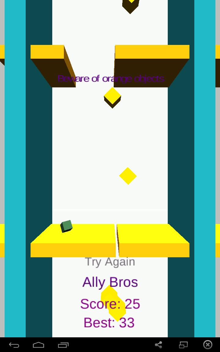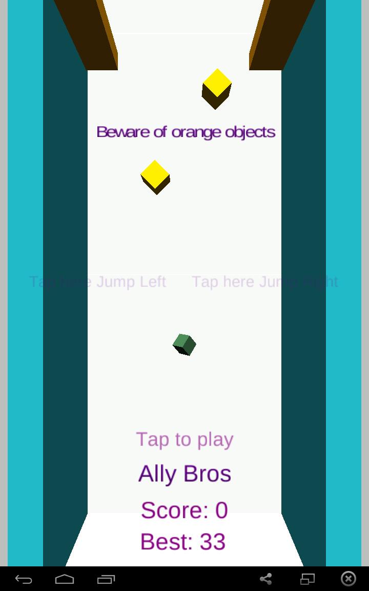 赢得游戏提防橙色对象。左右触摸以控制立方体。要获得更多分数,请继续上升。墙壁移动时要小心。