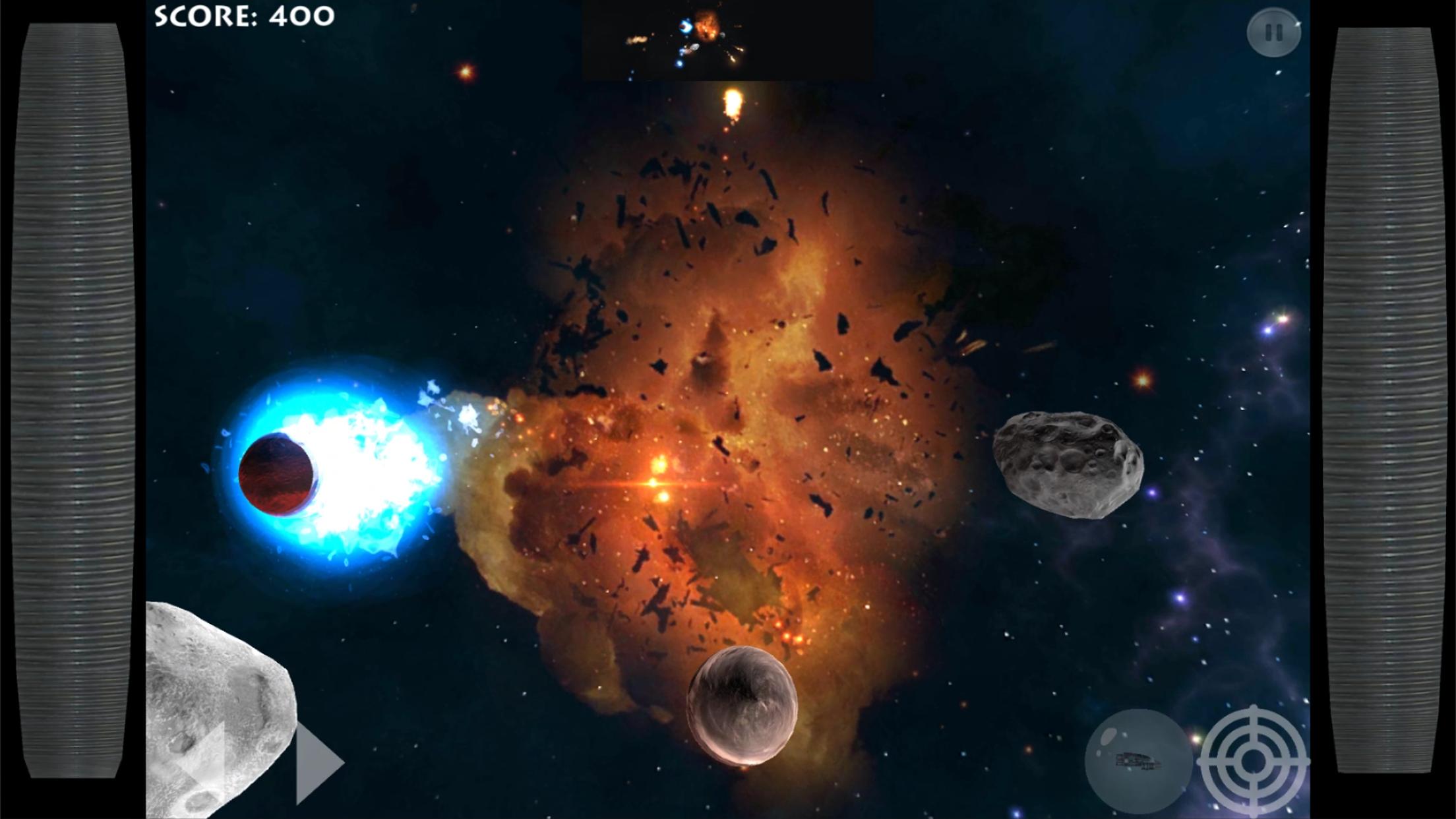 尽可能长时间保持生命。射击和/或避免传入的小行星和行星。