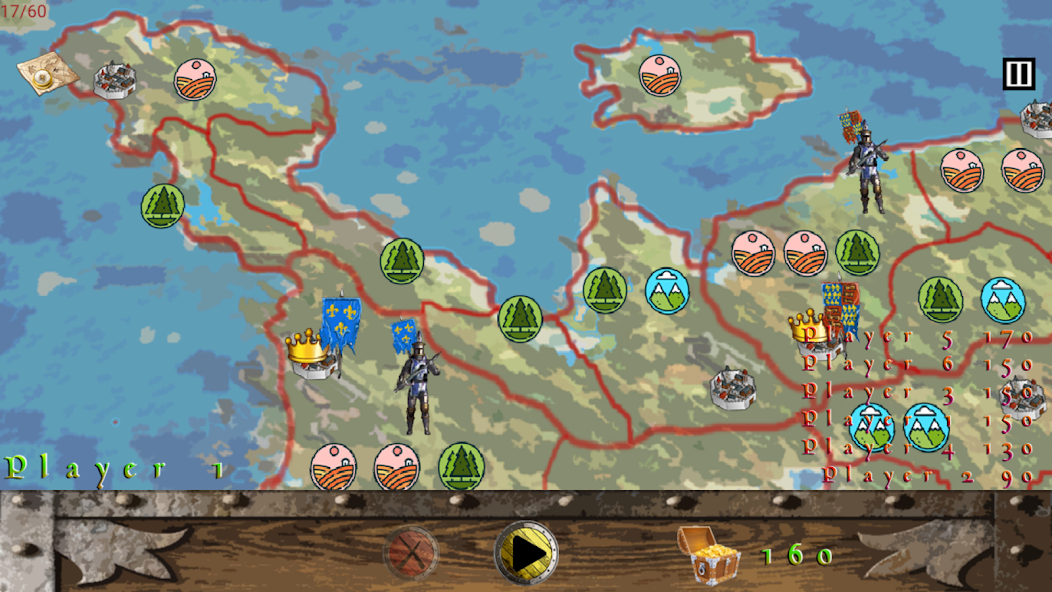 国王已经死亡,争夺王室的斗争已经开始。扮演王冠的贵族志向者之一的角色,并使用军队的力量击败其余的对手。