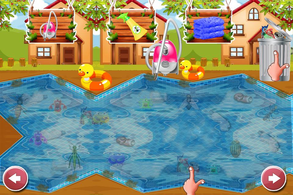 您好女孩,這是您的清潔時間,您有一些凌亂而骯髒的地方可以清理,例如花園,游泳池和海灘。為了清潔混亂,您擁有所有必需的工具。在此遊戲中,您首先必須清潔公主游泳池,海灘和花園,然後用您喜歡的物品裝飾這些地方。