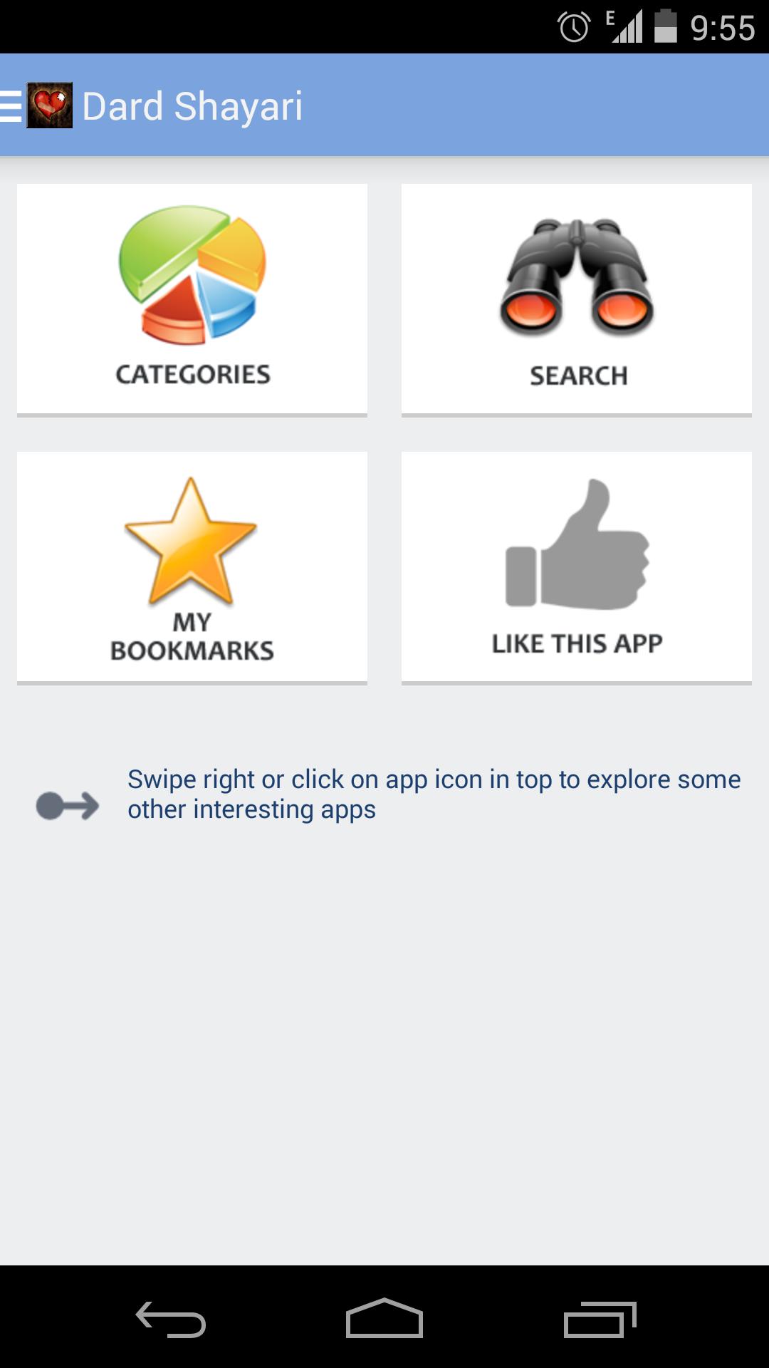 最終的新的和免費的離線收藏夾在各個類別的Dard-e-Dil Shayari系列中。在此應用程序下,您可以找到可以與朋友分享的shayari SMS和消息的分類良好