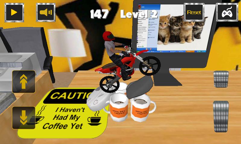 您需要知道您必須在一個辦公室開車,因此我們確信您認為這款賽車遊戲是一個非常激動人心的摩托車遊戲。您將需要躲避書籍,計算機,打印機,鍵盤,筆和其他物品等障礙。為了領導任務結束,即要完成所有九個級別,您將不得不提供專業和責任證明。