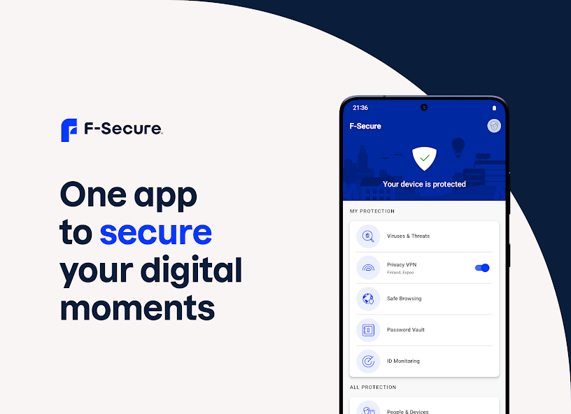 F-Secure多合一:防病毒,VPN和ID保護 - 移動安全變得容易。