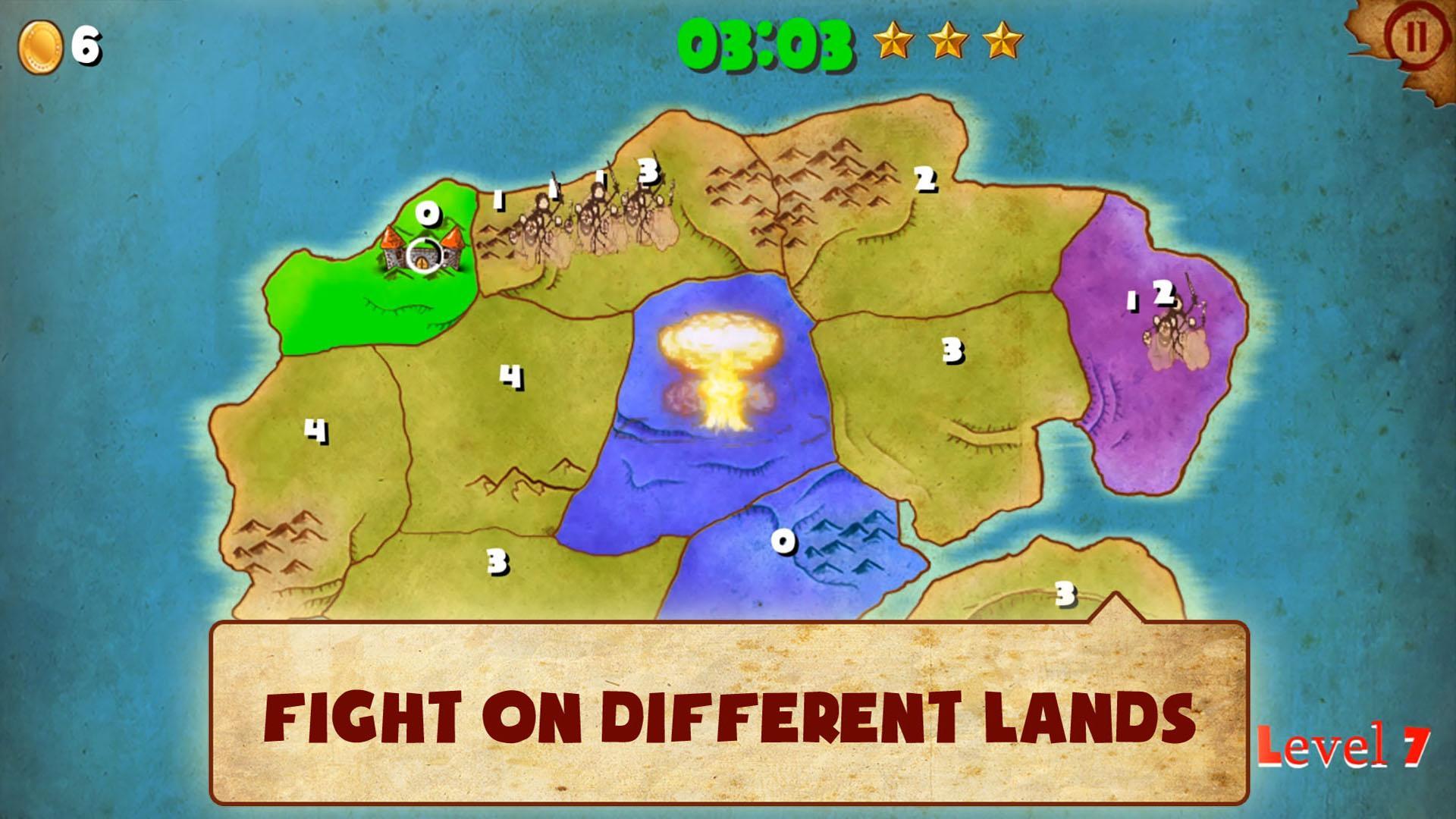 贏得戰爭或變得更寬鬆,只需3分鐘。收集星星並記住有時僅贏是不夠的,因為在戰爭和戰鬥質量中也很重要。您越早贏得更高的排名,您將獲得更多的人,他們將開始欣賞您的戰略能力!
