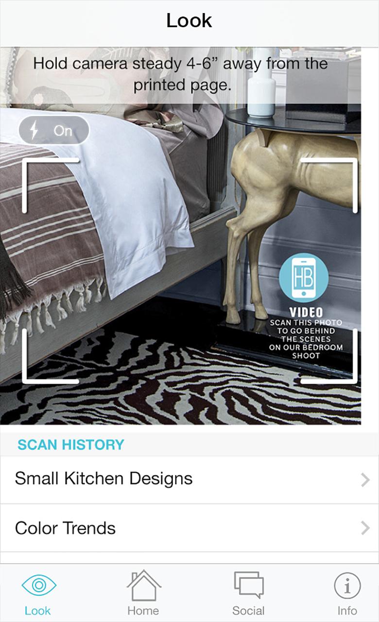 House Beautiful Connect可讓您使用Apple設備讀取無形的水印,這些水印是每個月美麗的房屋照片中嵌入的。當您在雜誌頁面中看到HB Connect智能手機圖標時,可以掃描圖像以解鎖幕後視頻和特殊內容。您還可以掃描特殊標記的頁面,以在家中“嘗試”新的油漆顏色或產品。
