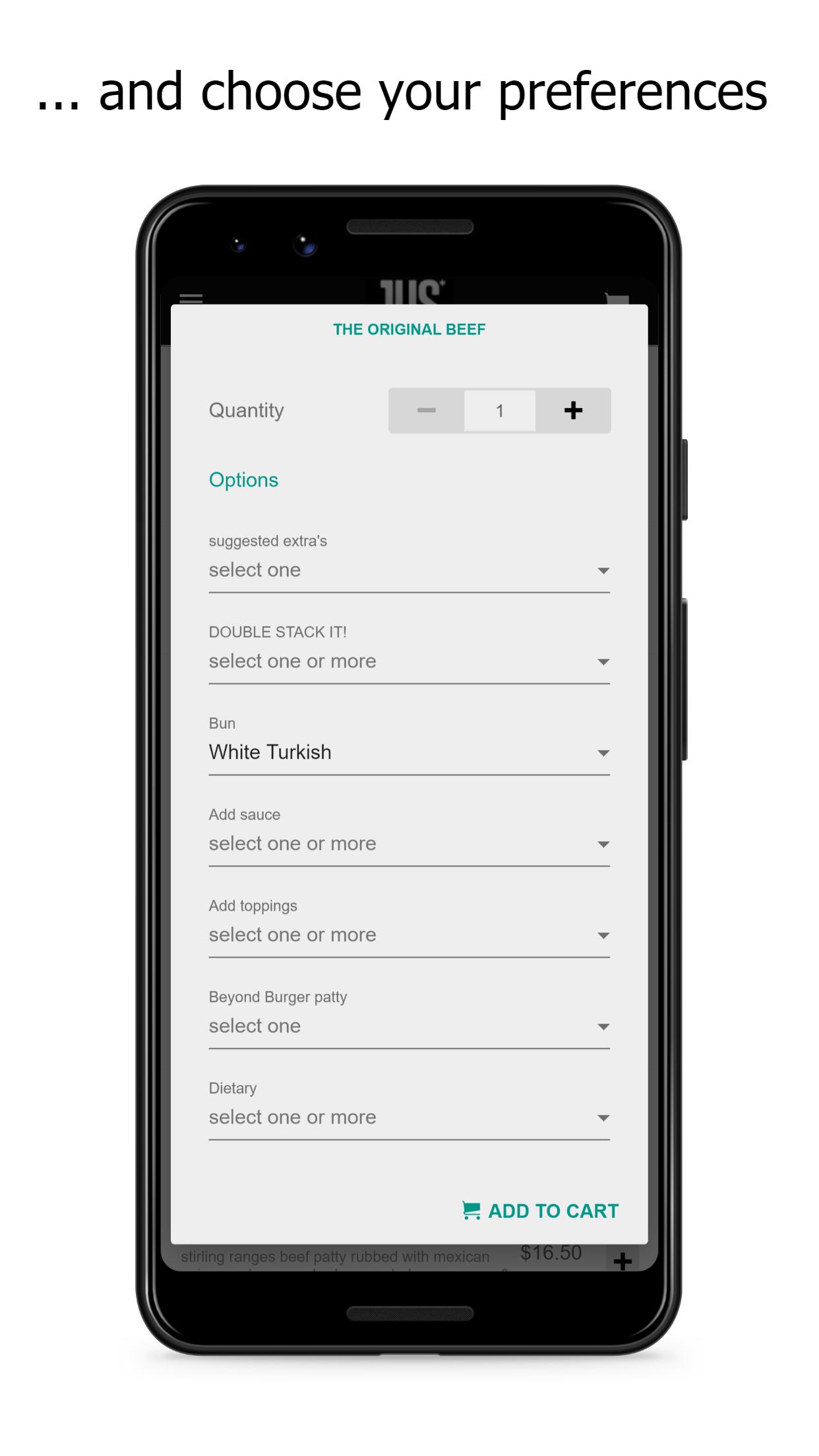 從Jus Burgers在線訂購應用程序訂購併支付您喜歡的餐點,以便您可以跳過等待。快速,易於使用且無憂。