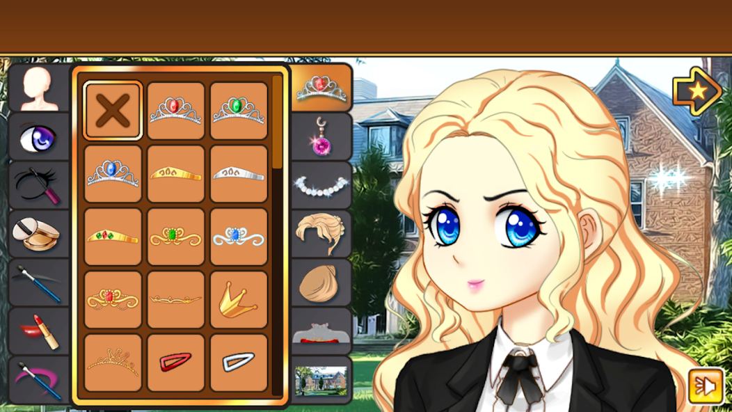 化妝你的角色。可愛的服裝和珠寶配飾正在展出。