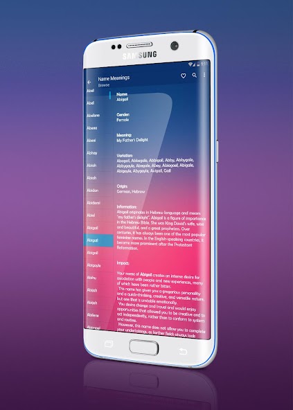 通過安裝“具有影響力的名稱含義”,獲得想法並在尋找嬰兒名稱的過程中找到靈感。