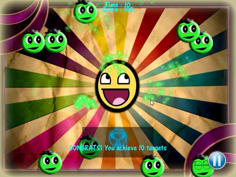 emo臉來飛來飛去,用手指敲擊emo臉並賺取積分。