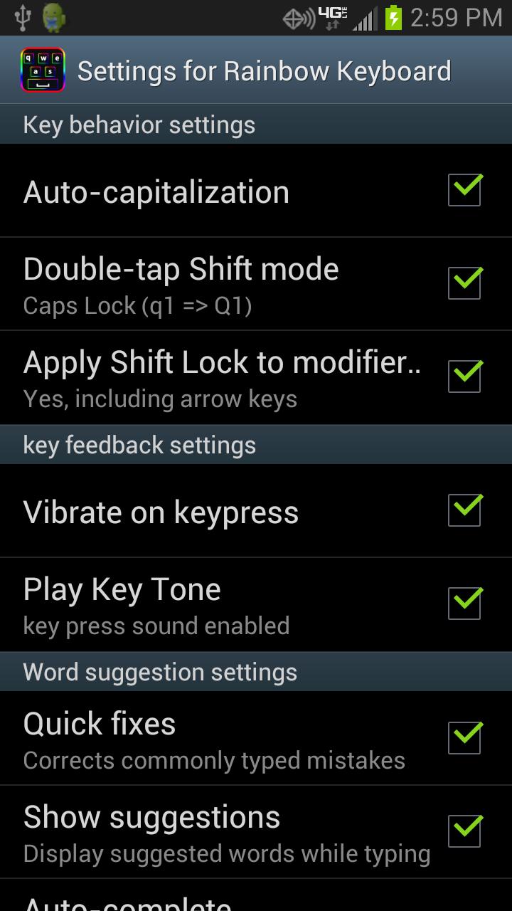 Rainbow Keyboard在鍵入時具有發出聲音的設置,在按鍵,拼寫檢查器,提前設置和更多設置時,會在鍵盤上發出反饋,以使您的鍵盤易於日常使用。