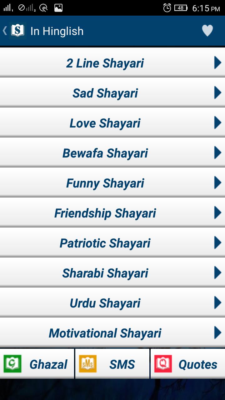 印地語Shayari和SMS的最大收藏是離線的! Android上Shayaris的權威應用程序!