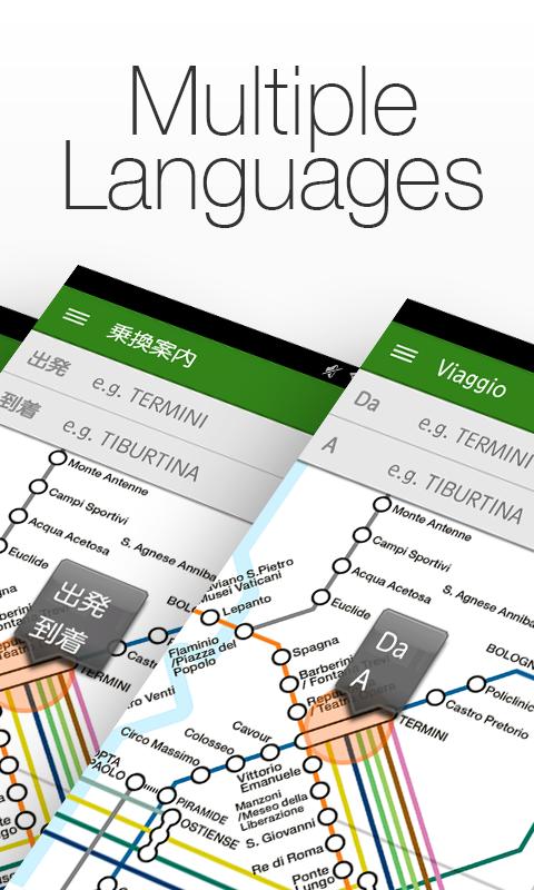 該應用程序將為您提供輕鬆的旅程計劃,並使用Romametro(ATAC)和Trenitalia(FL,LE)的可縮放互動地圖以及位於羅馬和意大利米蘭的Malpensaexpress&Milanometro&Trenord。