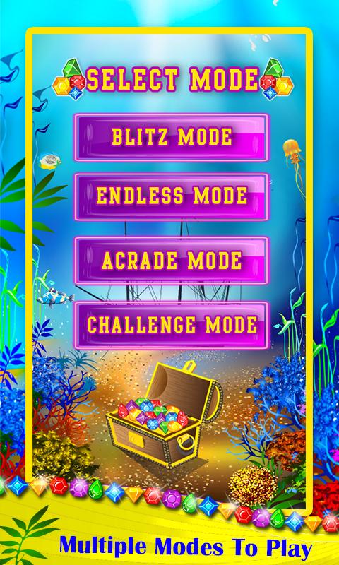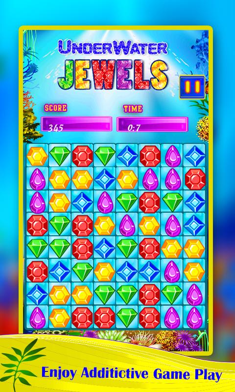 經典的Match3益智遊戲,以觸摸,比賽和狩獵Underwater Jewels寶藏