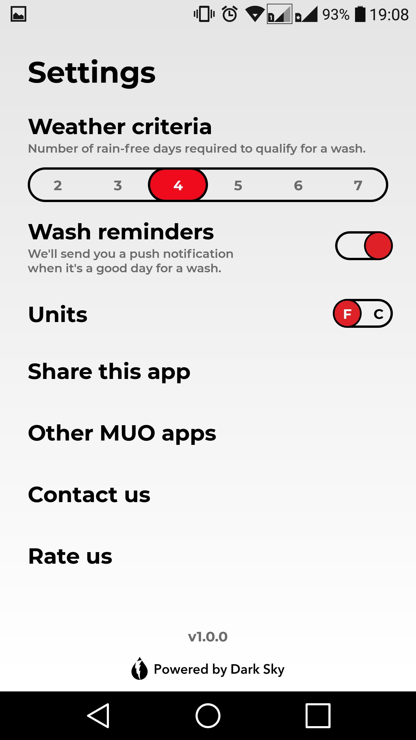 您甚至不必自己檢查應用程序。 Washie會向您發送提醒,如果這是洗滌的好日子。而且,如果一個星期太長了,您可以將標準從兩天更改為七天。