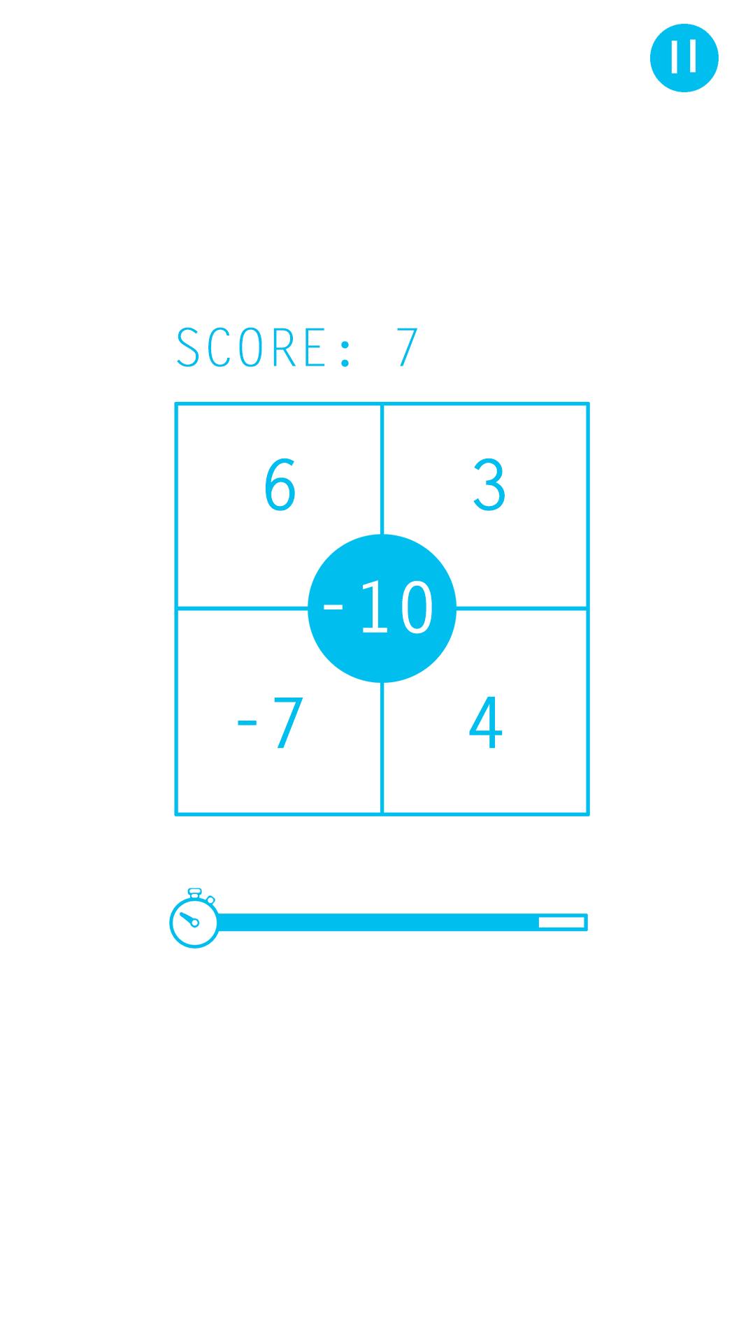 ●您有七秒鐘可以在四個連接器中選擇正確的答案,從而使中心號碼為零。